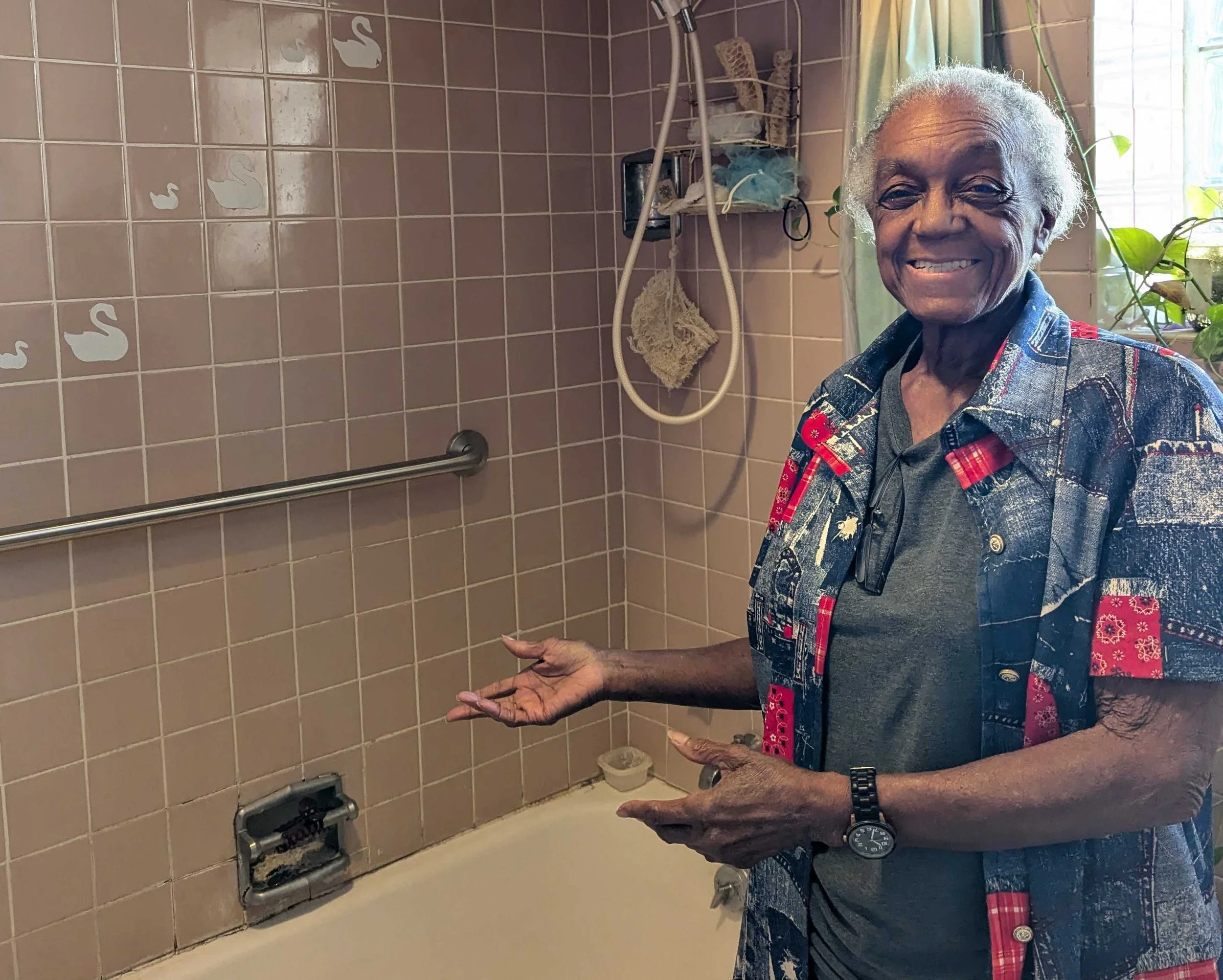 This homeowner received a new grab bar that helps her remain safe and confident at home.